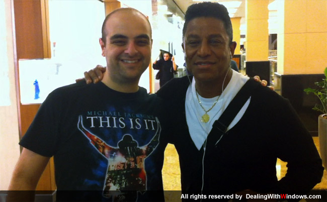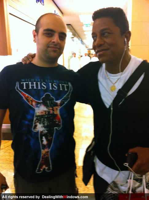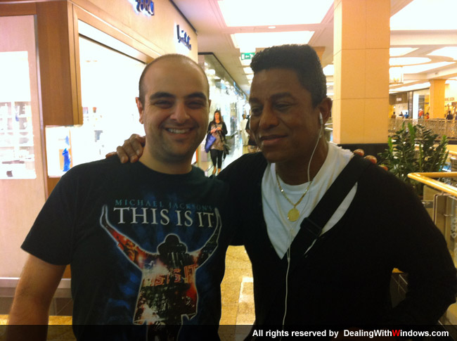 Today was my lucky day, I went to the Emirates mall in Dubai wearing my Michael Jackson’s “This Is It” t-shirt, putting on my headphone and listening to some songs collection loudly, in a sudden i noticed someone walking towards me with his thumb finger up while looking at my t-shirt, I was totally surprised when Jermaine Jackson himself stopped me in the mall !!! Woow, what a un expected surprise!! I got the chance to pay my condolences for Michael Jackson’s death. I know many of MJ fans would envy me for this opportinuty and I would do the same if I were in their place.